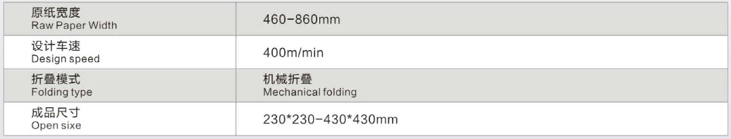 7. Automatic last sheet folding ( outside the machine )8. Mechanical , electrical and photoelectric control technology , automatic inspection and feed back