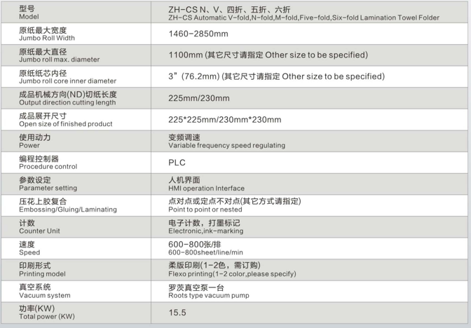 ZH-CSN(Z),V,4-6折全自動(dòng)上膠粘合(復(fù)合)擦手紙機(jī)是將擦手紙或濕強(qiáng)紙經(jīng)壓花,刀輥剪切,交互折疊成N、V、四折、五折、六折型,使用時(shí)一張扣一張連續(xù)抽出,該機(jī)采用真空吸附,自動(dòng)計(jì)數(shù)分疊裝置,具有速度快,數(shù)量準(zhǔn)確等優(yōu)點(diǎn)。